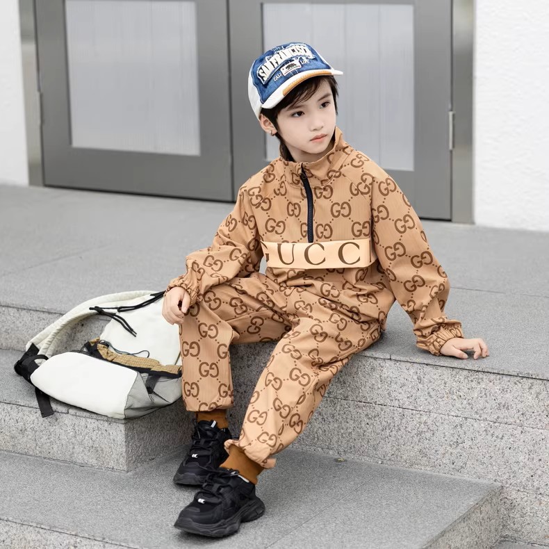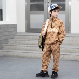 Gucci children’s set, khaki, stand-up collar, half-zip, long-sleeved, with trouser, a perfect set for your little ones. Suitable for both boys and girls 2-12 years old. Made of soft and comfortable pure cotton