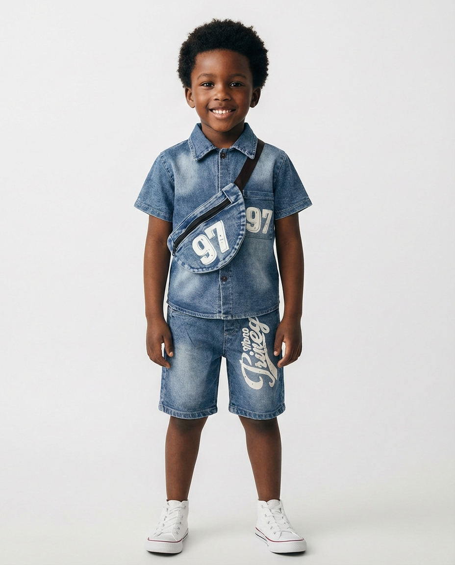 Any questions related to Princely Jeans Top & Shorts with Bag – Blue?